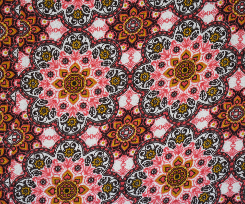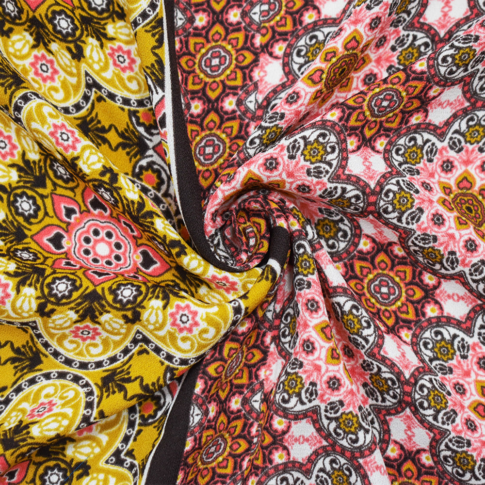 Brown-Orange-Multi Poly Floral Border Printed Crepe Momie Georgette Fabric