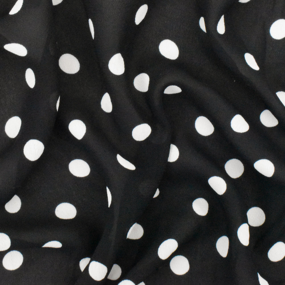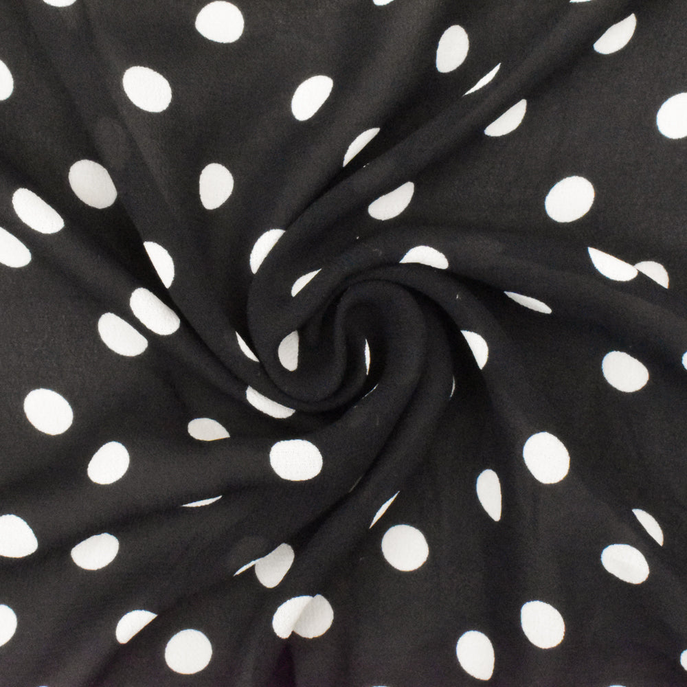 Old Ivory-Black Famous Designer Dot Printed Viscose Georgette Woven Fabric