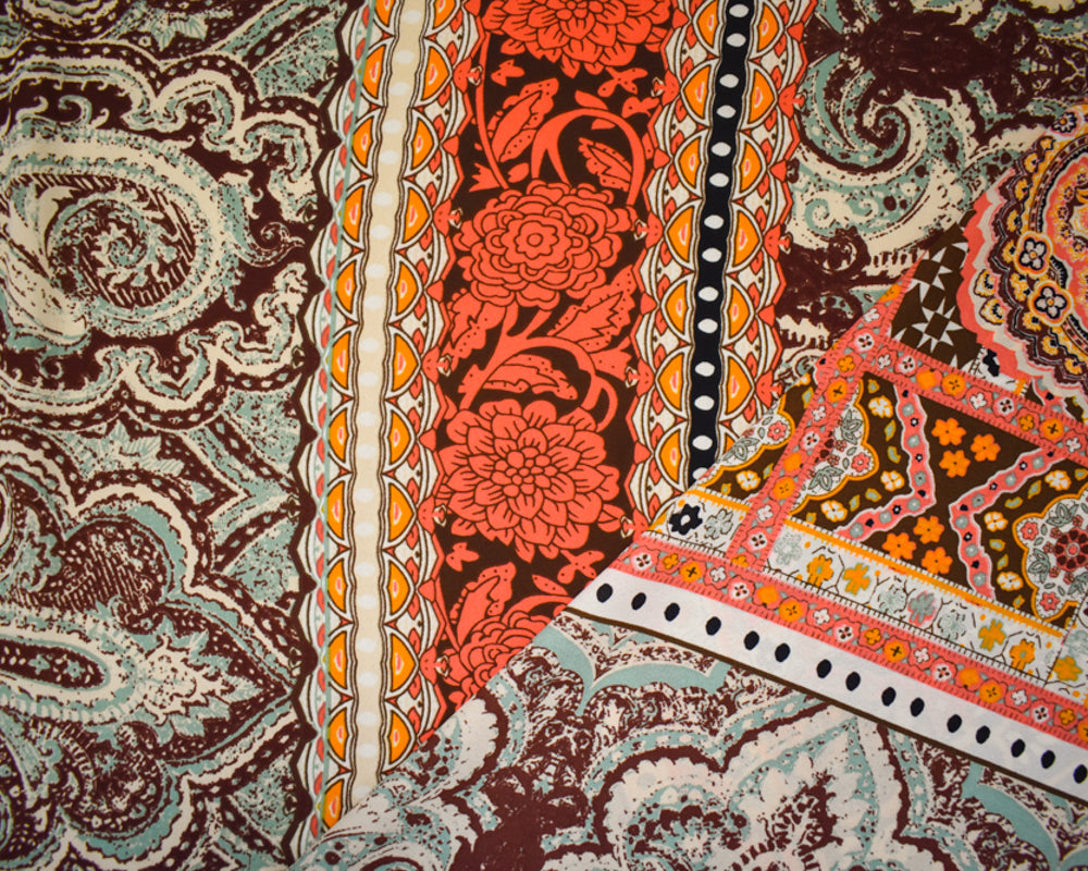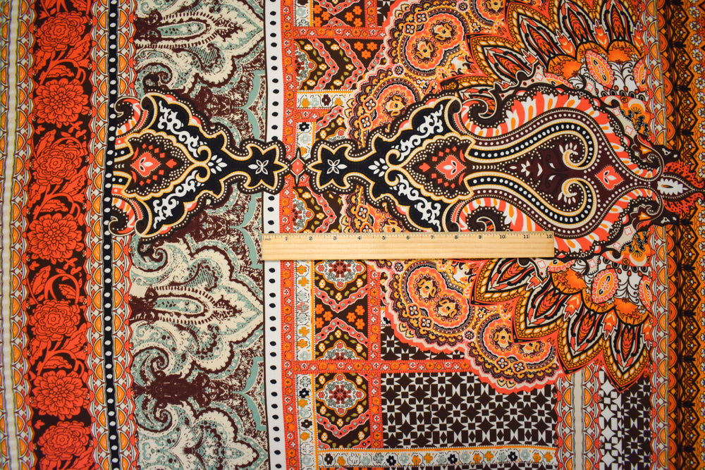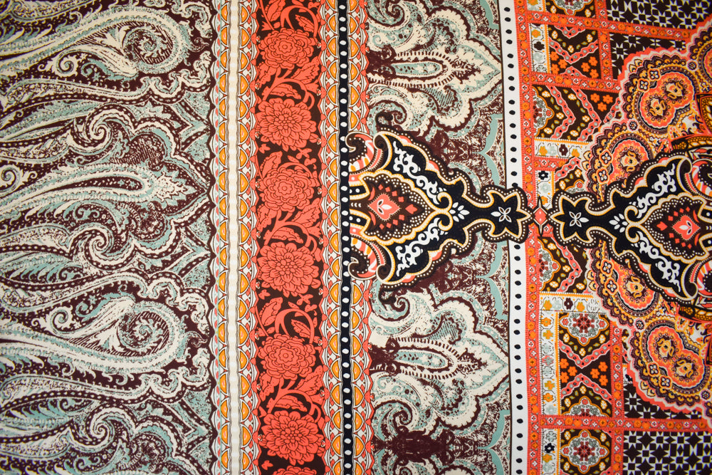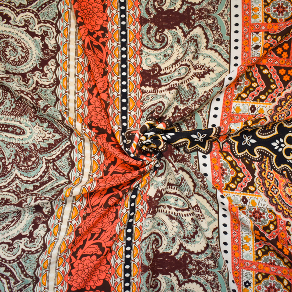 -Red-Beige-Multi Poly Paisely Floral Multi Printed Georgette Woven Fabric