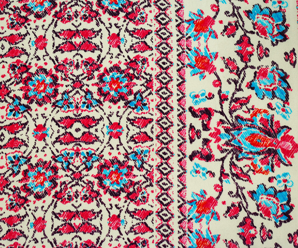 Red-Teal-Multi Poly Border Printed Crepe Momie Georgette Woven Fabric