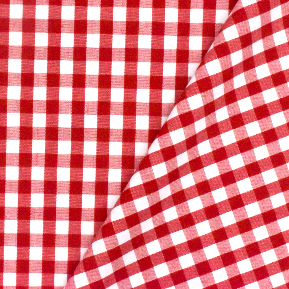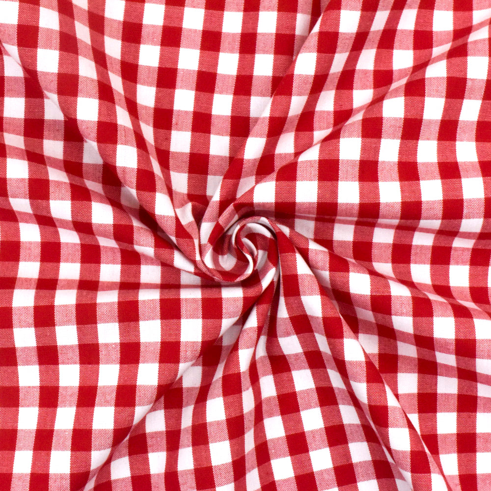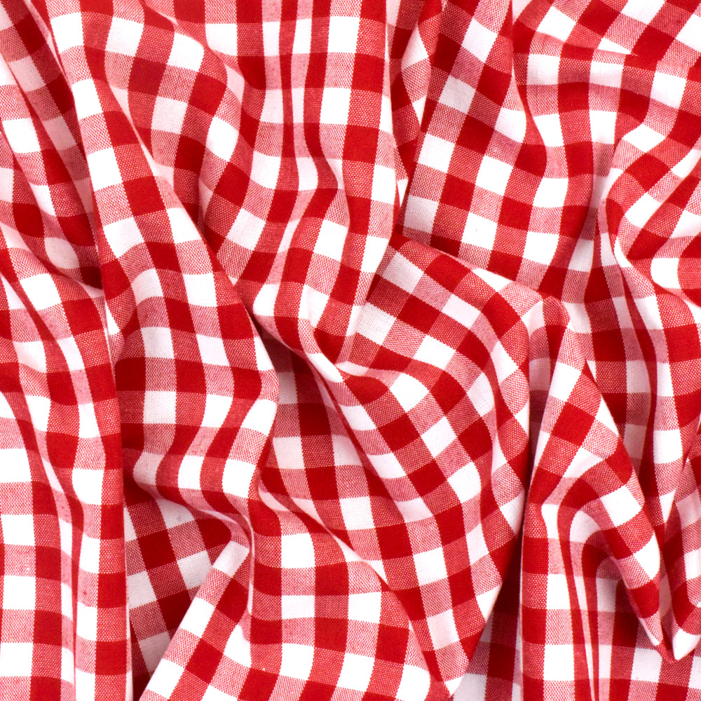 Classic Red-White Check Polyester Gingham Woven Fabric