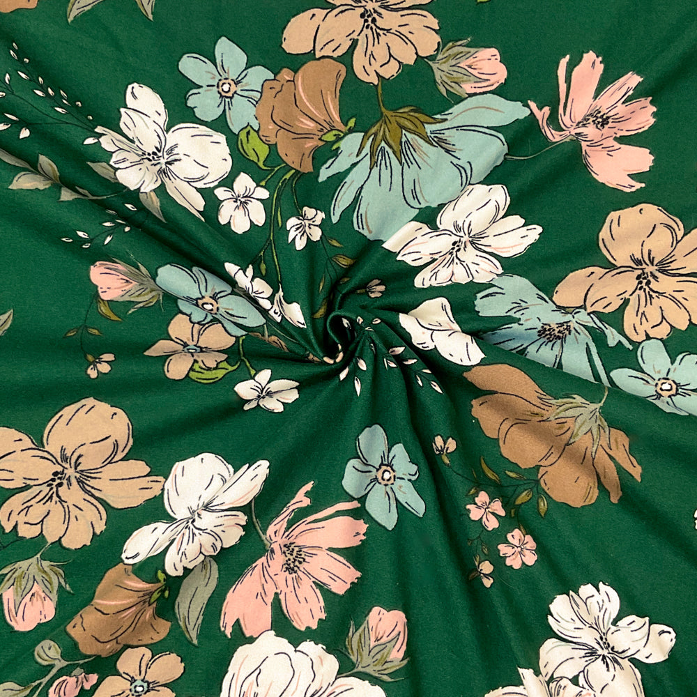 Green-Multi Poly Spandex Stretch Floral Print DB Jersey Knit Fabric