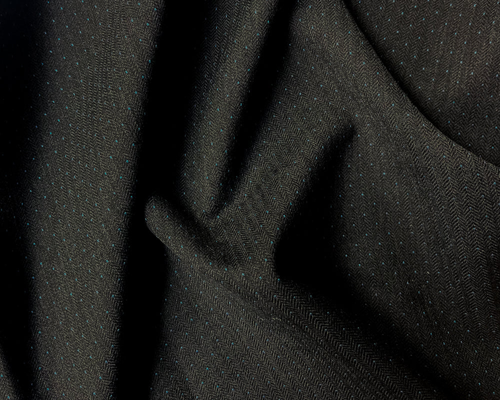 Black-Gray-Blue Wool Polyester Dobby Herringbone Woven Fabric