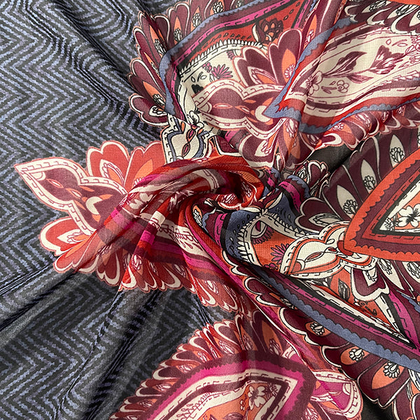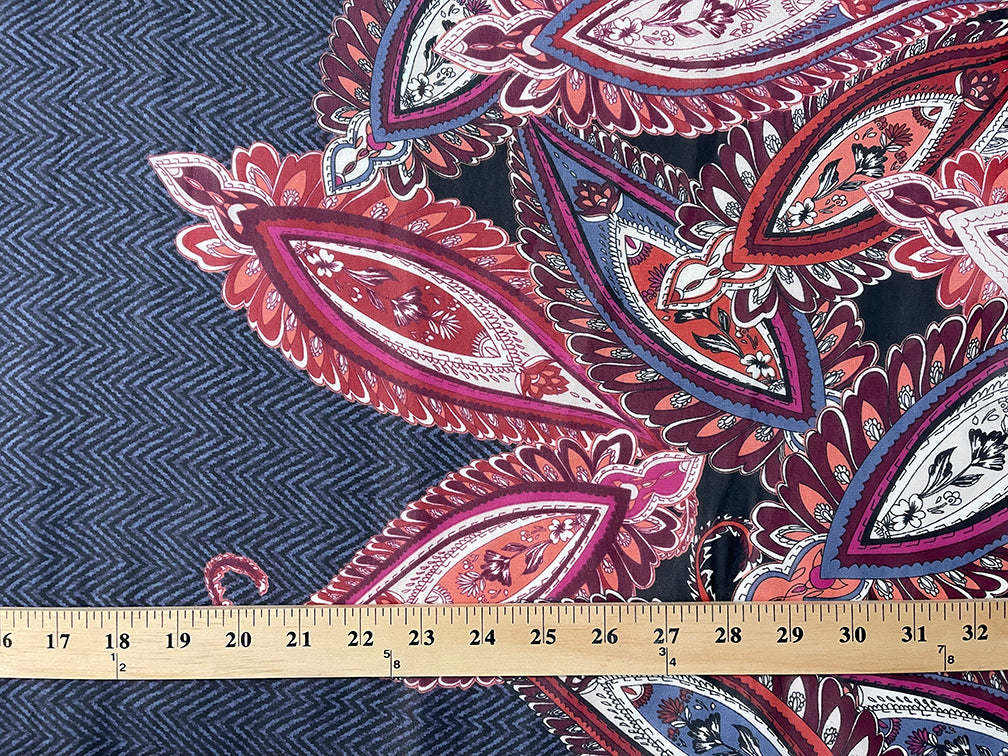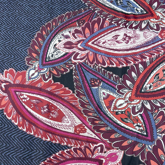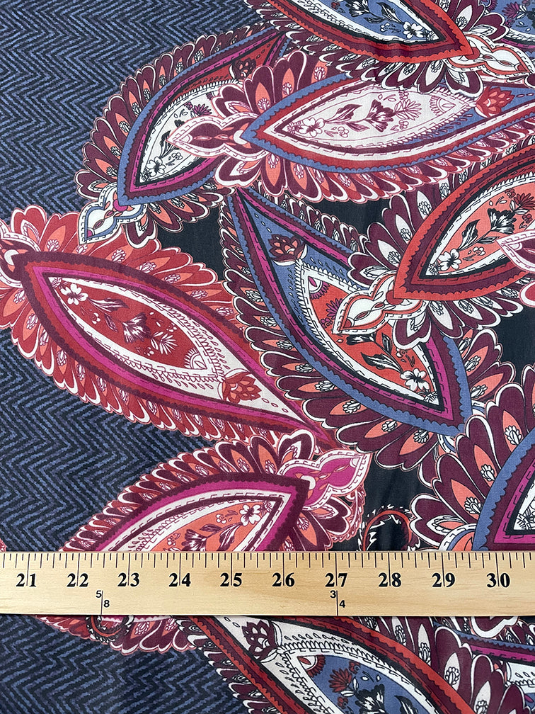 Navy and Black Herringbone Paisley Print Chiffon Fabric