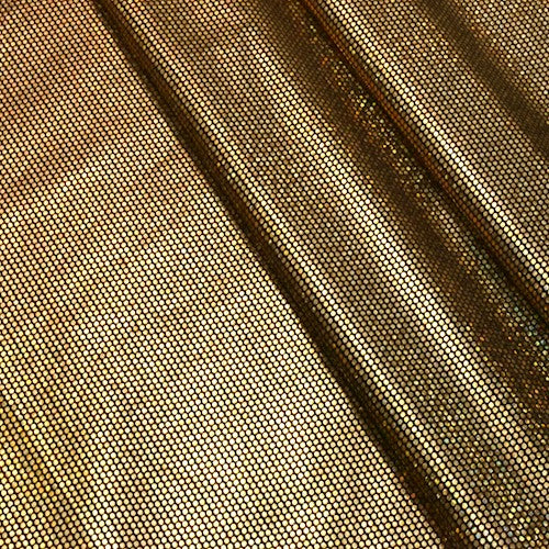 Hologram Gold/Black Dot Foil Printed Stretch Knit Fabric