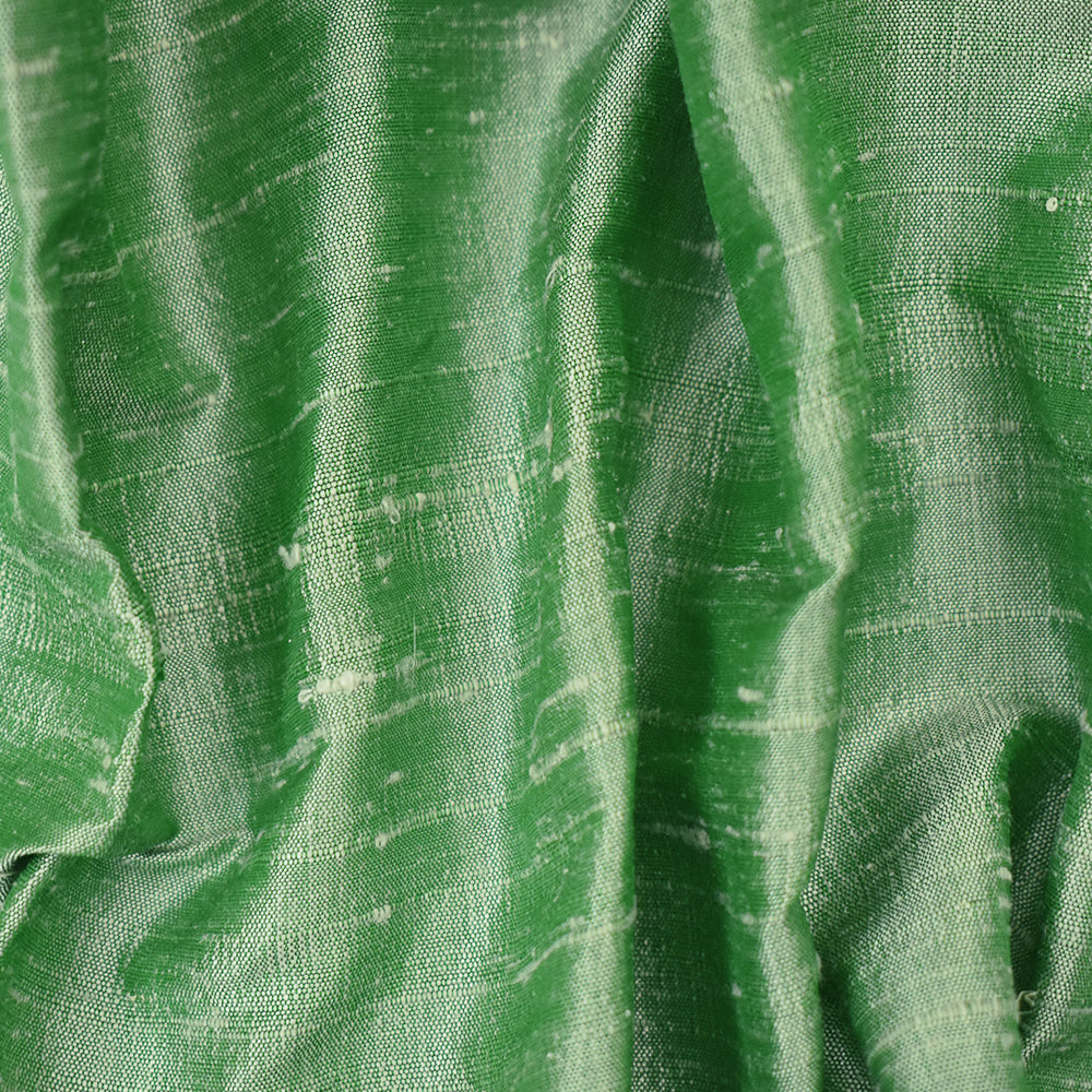 White-Green Silk Iridescent Dupioni Woven Fabric
