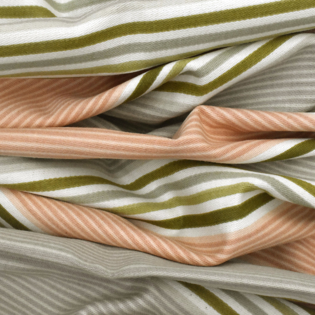 Gray-Faded Peach-Multi Waverly Stripe Printed Twill Decorating Fabric
