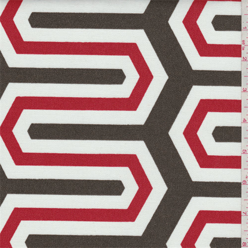 "Cadee" by Premier Prints. A white, lipstick red and dark brown print. This medium weight woven polyester fabric is suitable for indoor and outdoor use.