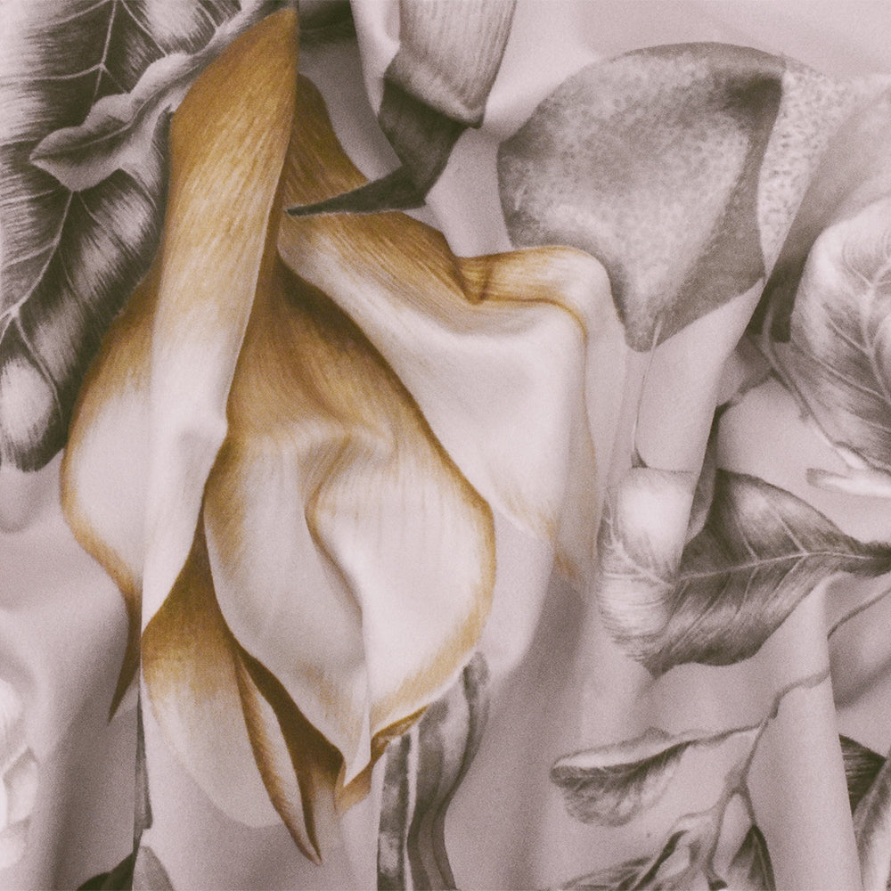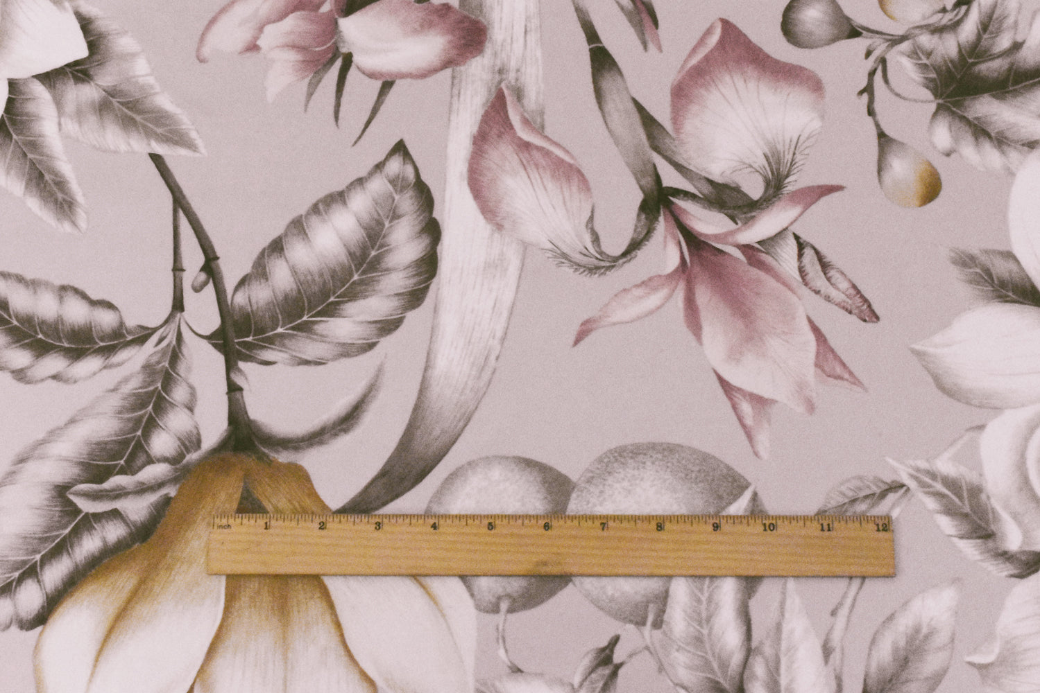 Pink-Beige-White Floral Print Faux Suede Poly Home Decorating Fabric