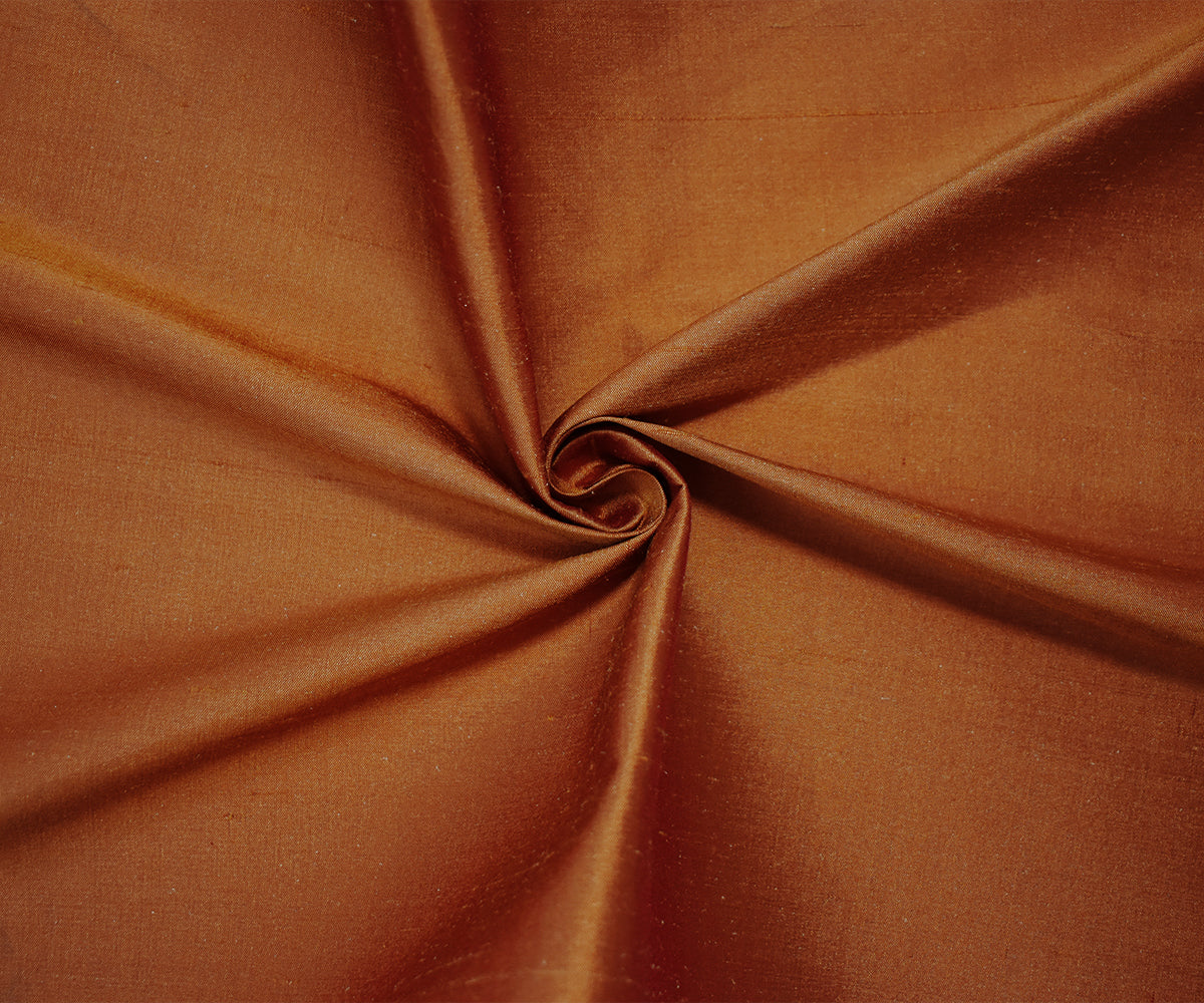 Amber Brown-Orange Silk Iridescent Dupioni Woven Fabric