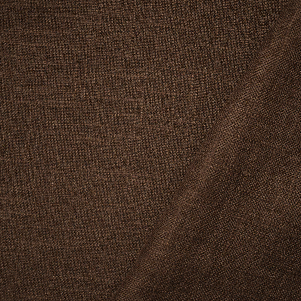 Brown Linen-Viscose Cross Hatch Slubbed Solid Hopsack Woven Fabric