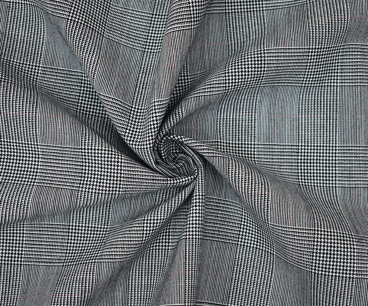 Black-White-Red Poly Wool Glen Plaid Woven Shirting Fabric