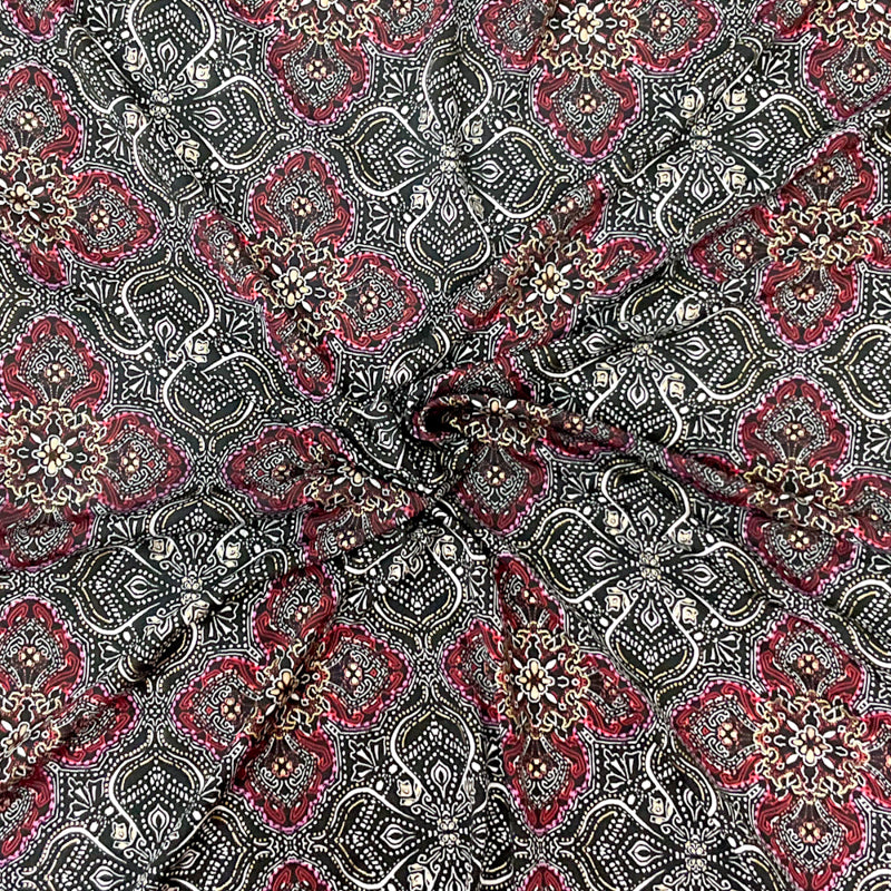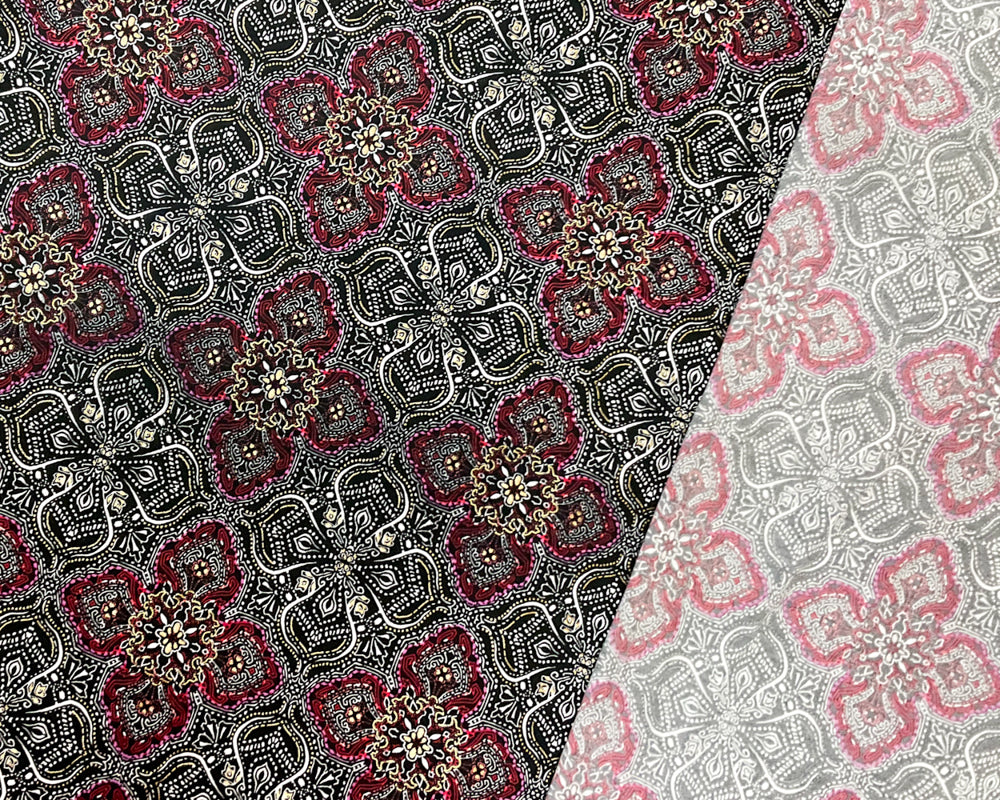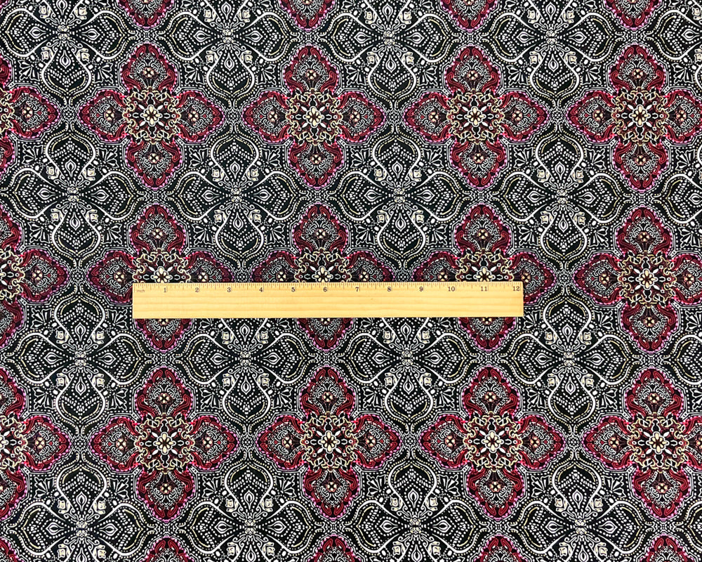 Black-Red Poly Spandex Baroque Print ITY Jersey Knit Fabric