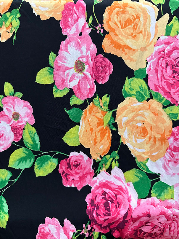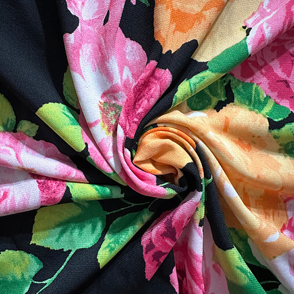 Pink and Orange Roses Print ITY Jersey Knit Fabric