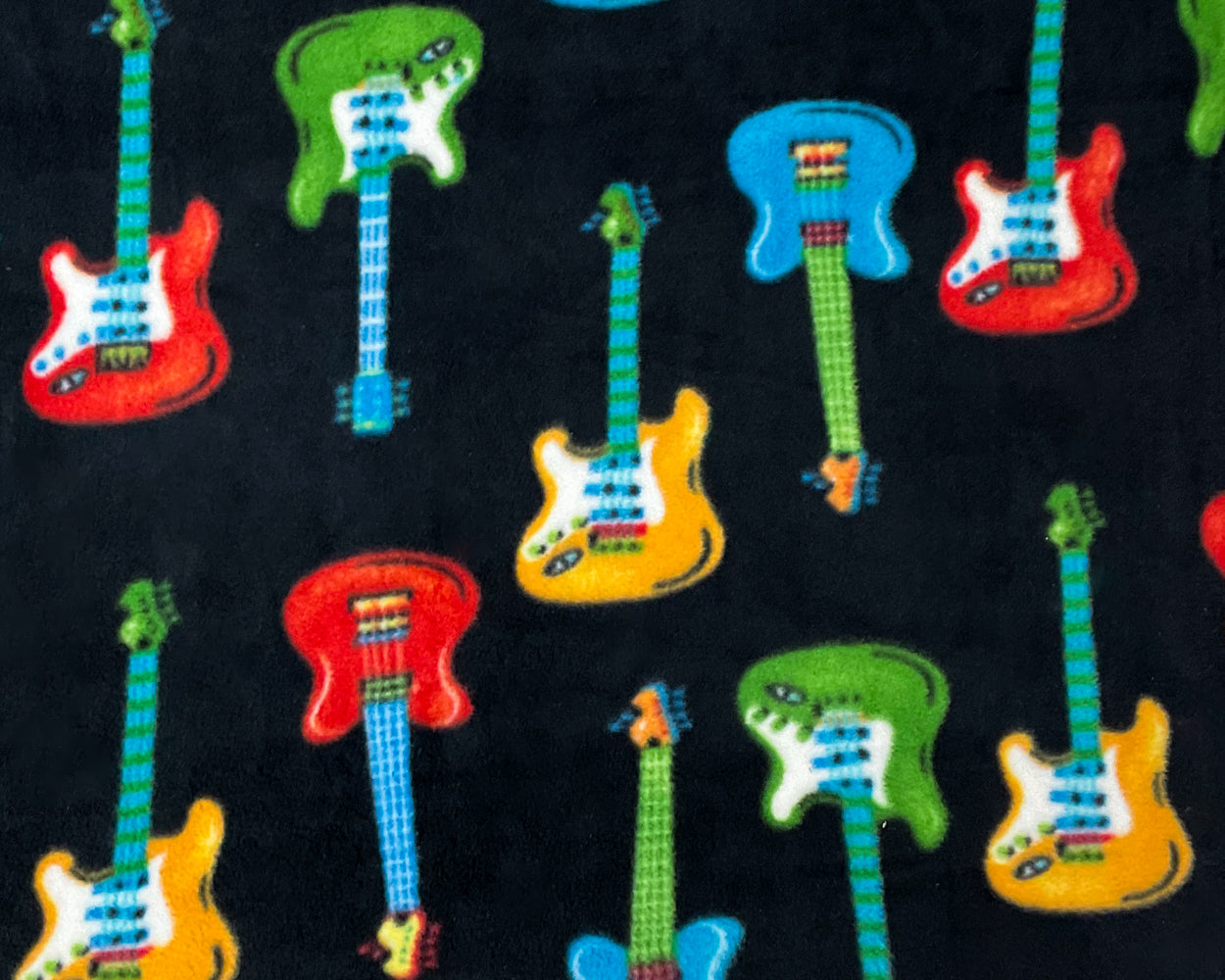 Black-Multi Polyester Guitar Printed Polar Fleece Knit Fabric