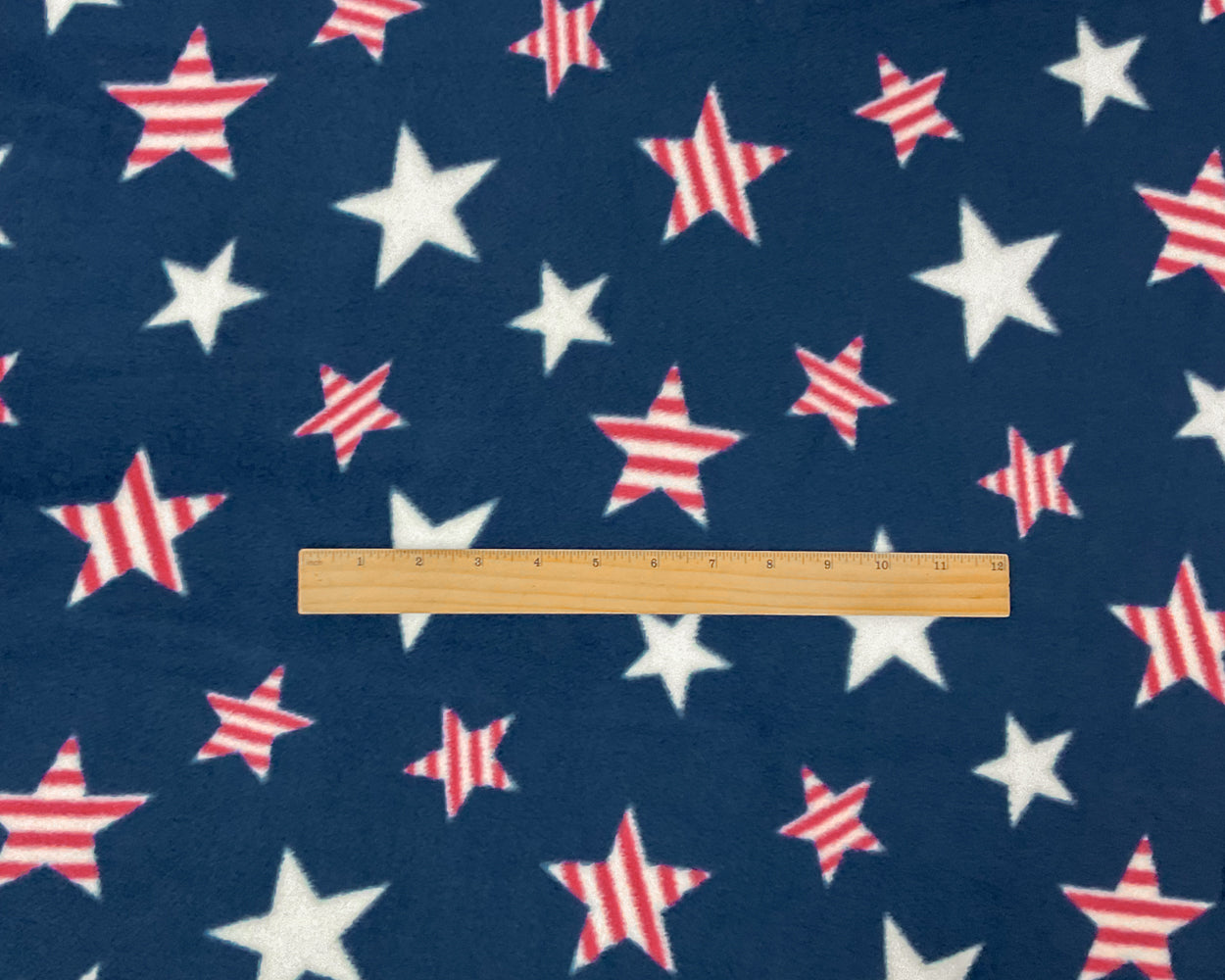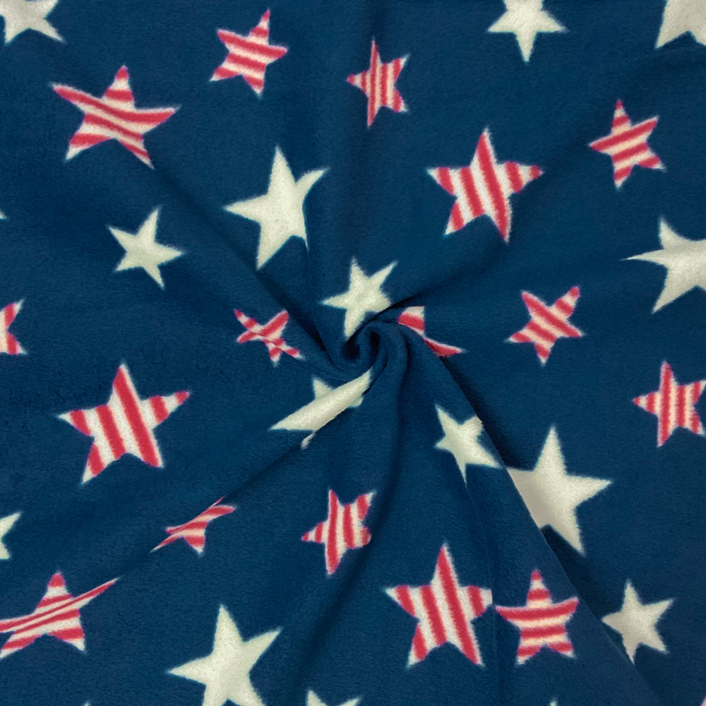 Blue-Multi Polyester Star Printed Polar Fleece Knit Fabric