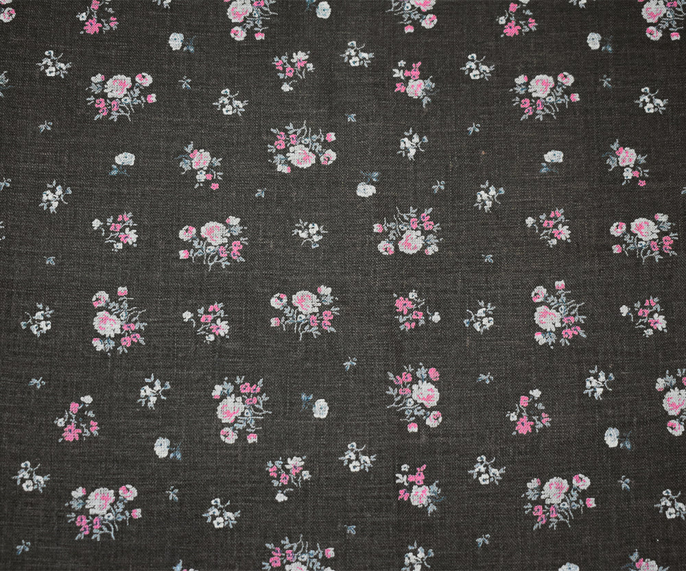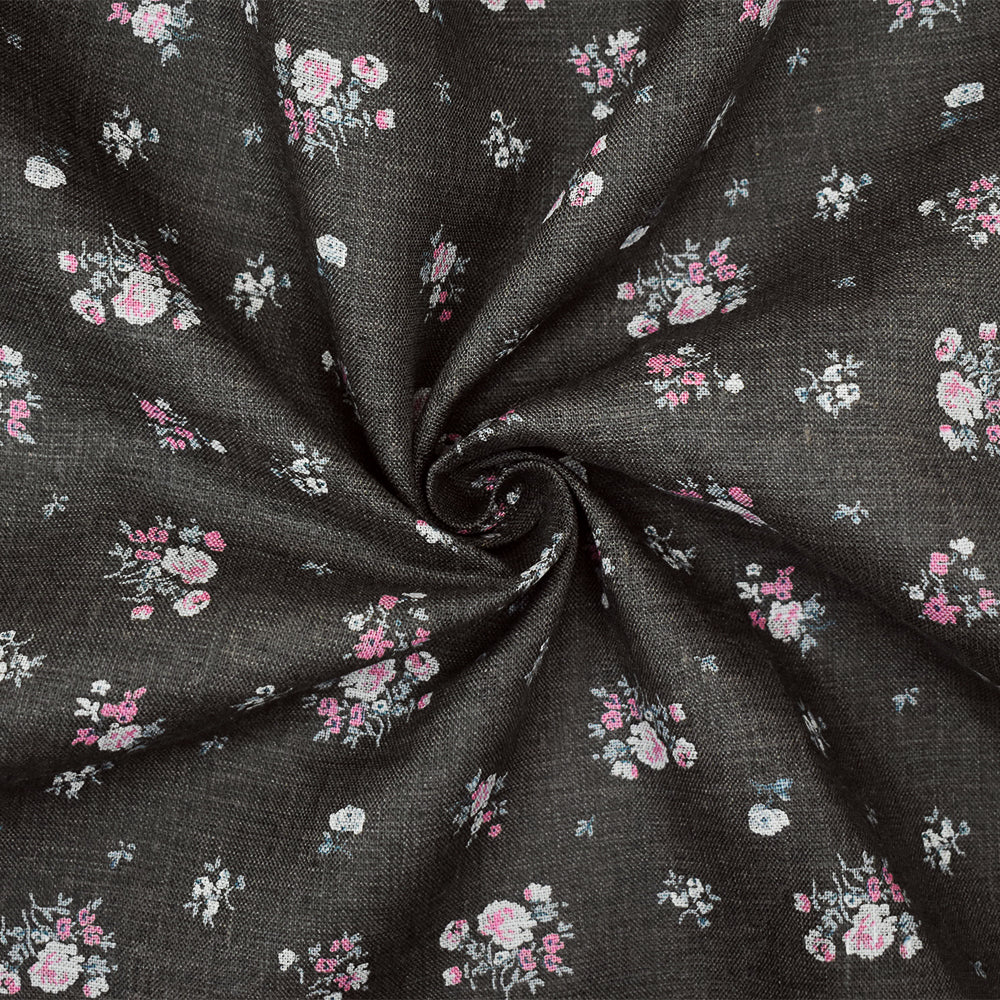 Gray-Pink-Multi Ditsy Floral Printed Linen Woven Fabric