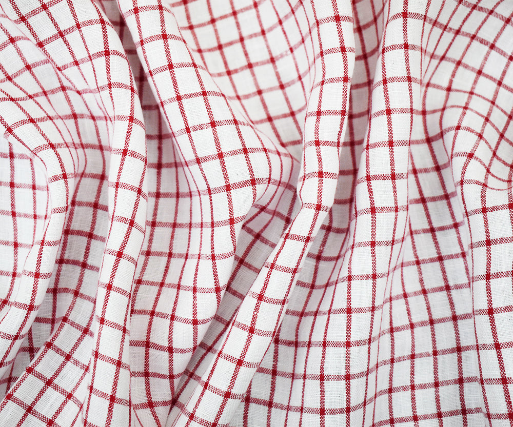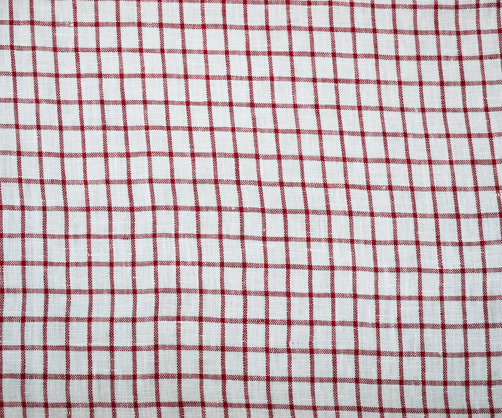 Red-White Moygashel Washed Grid Check Irish Linen Woven Fabric