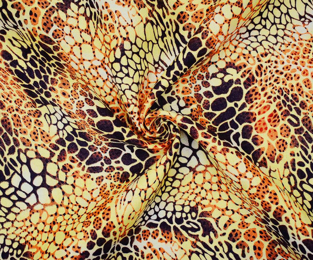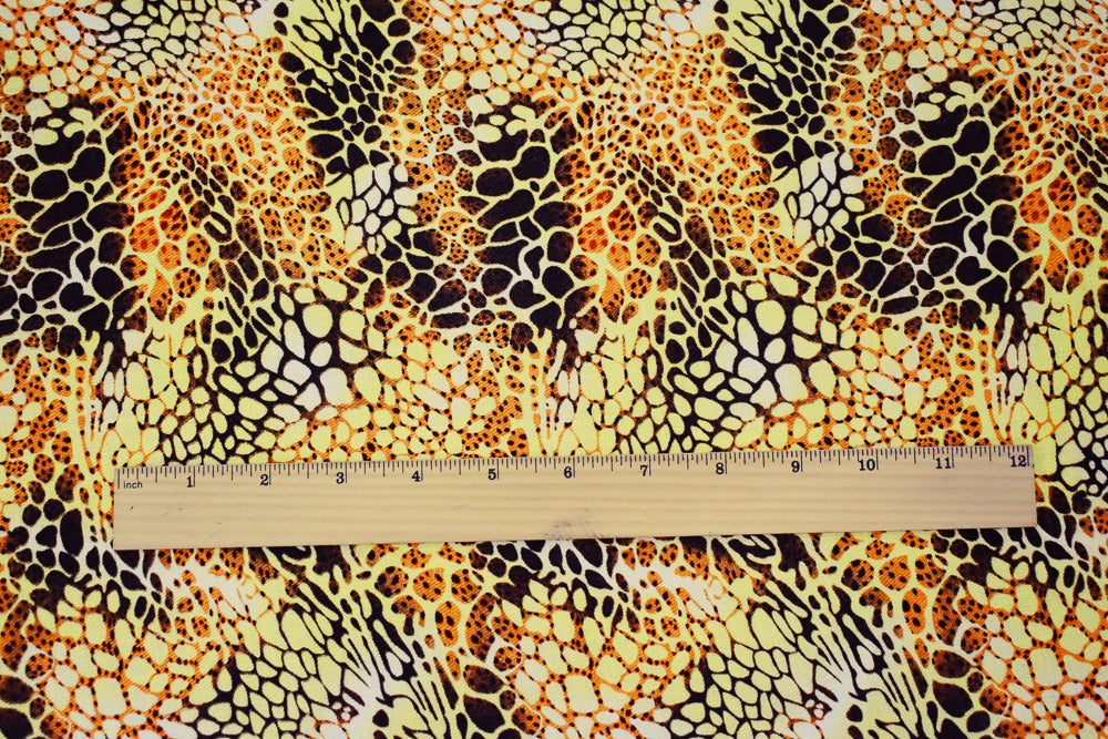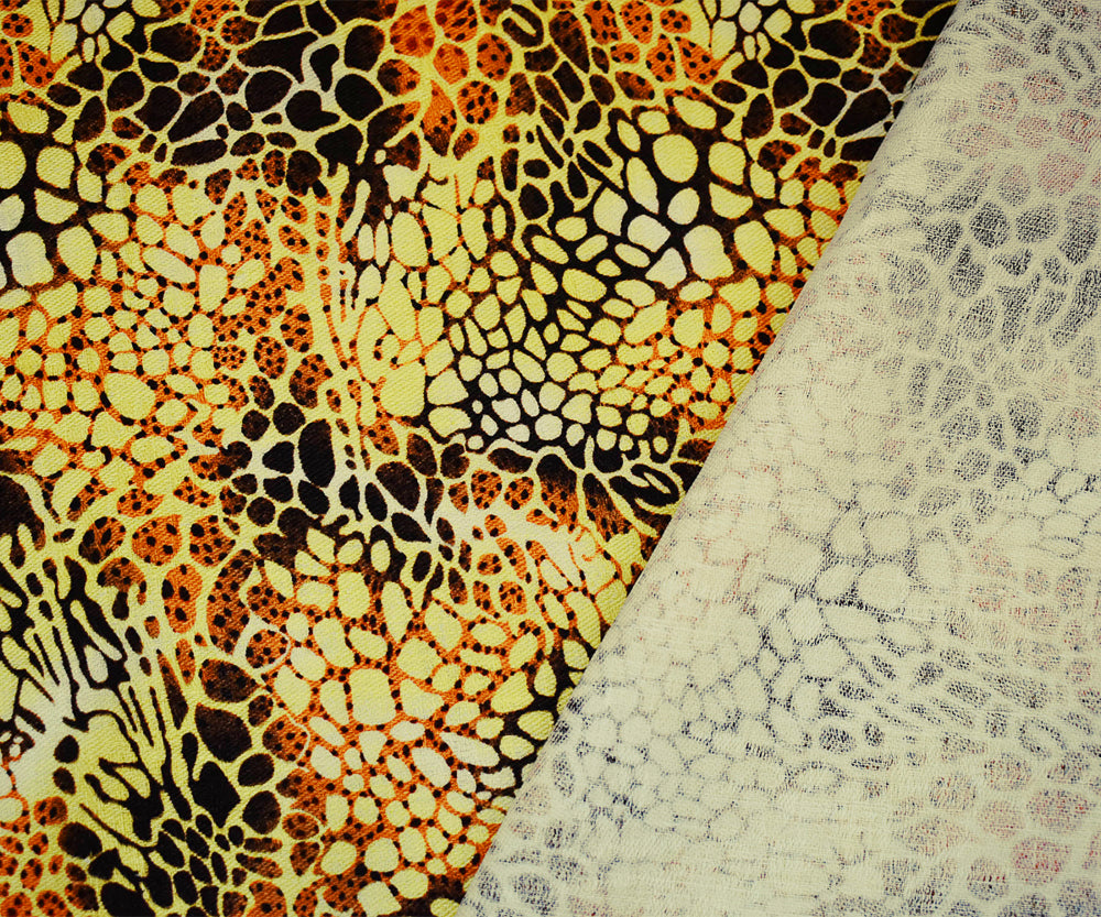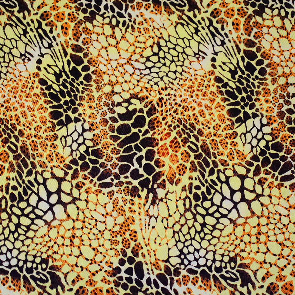 Yellow-Brown-Orange Abstract Cheetah Pattern Printed Linen Twill Fabric