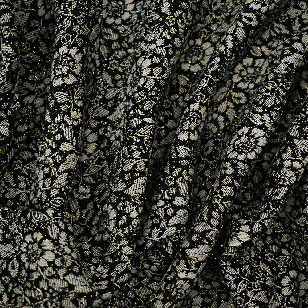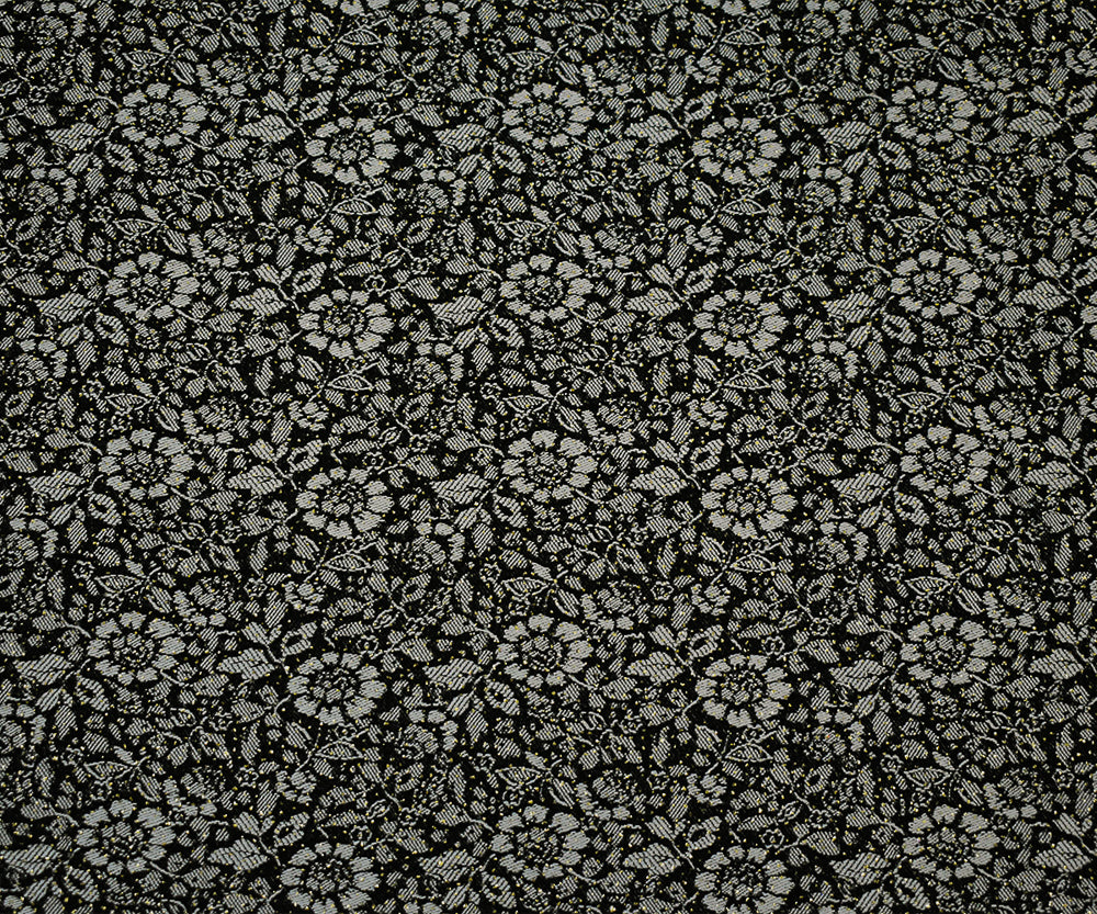 Black-Gray-Gold Rayon Blend Stretch Spandex Floral Bengaline Jacquard Fabric