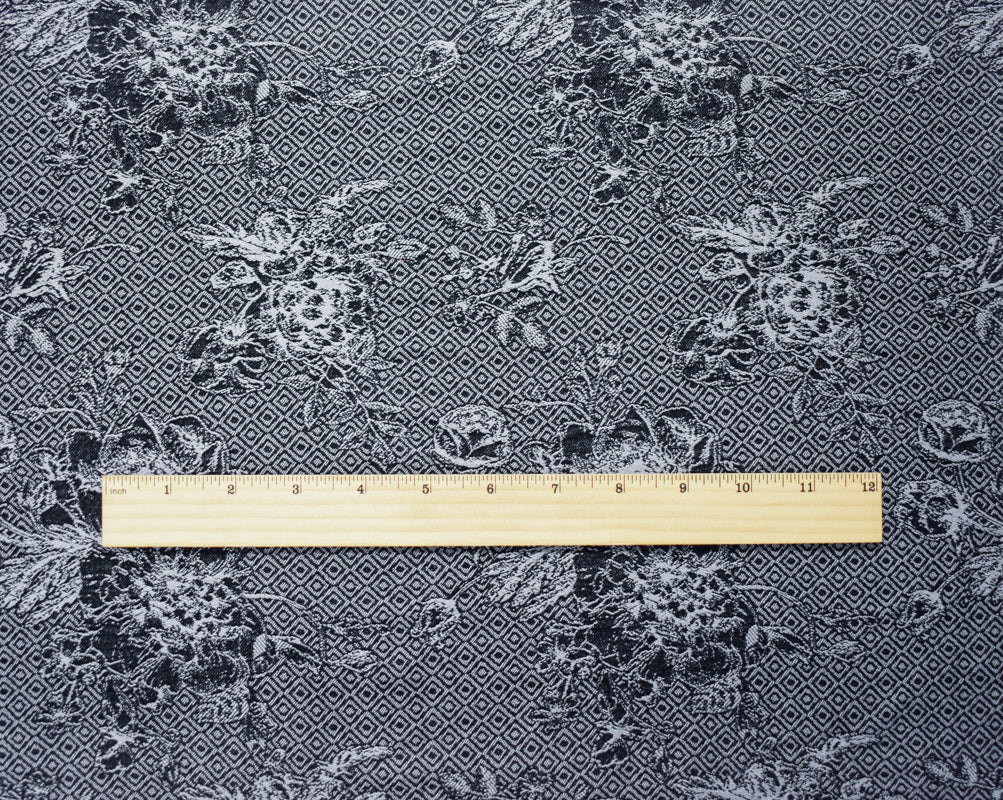 Black-Gray Rayon Blend Floral Bengaline Jacquard Woven Fabric