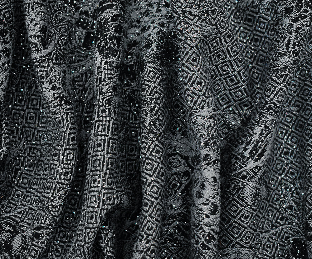 Black-Gray-Silver Rayon Blend Stretch Floral Diamond Bengaline Jacquard Fabric