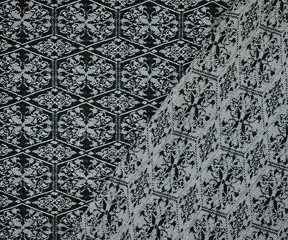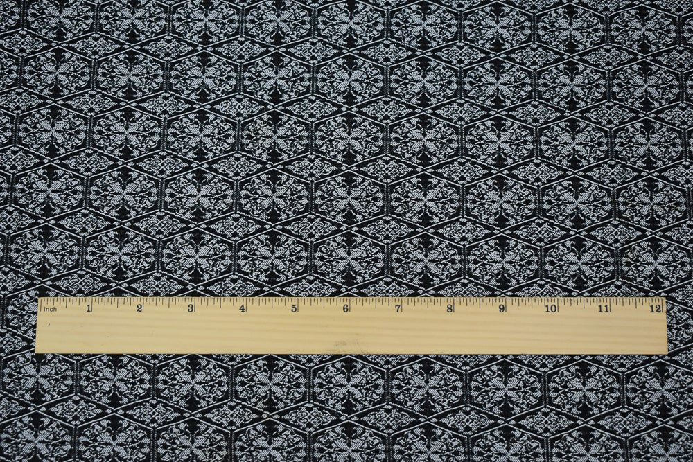Black-White Rayon Blend Stretch Spandex Tile Bengaline Jacquard Fabric