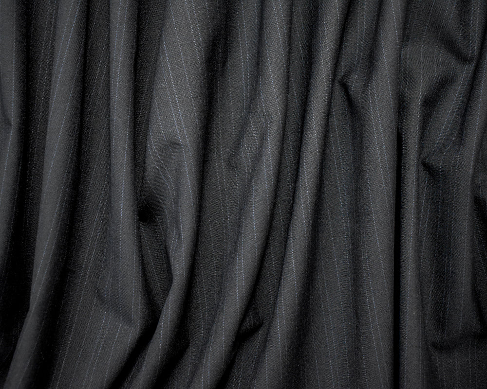 Black-Deep Blue Tropical Wool-Poly Japanese Vertical Stripe Shirting Fabric