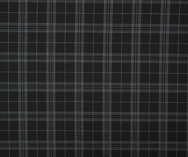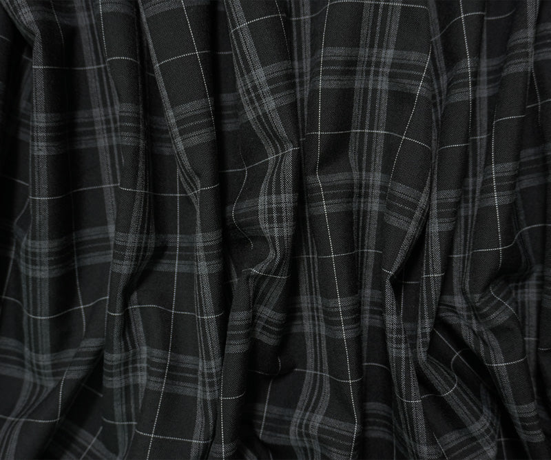 Black-Gray Poly Wool Plaid-Check Japanese Woven Shirting Fabric