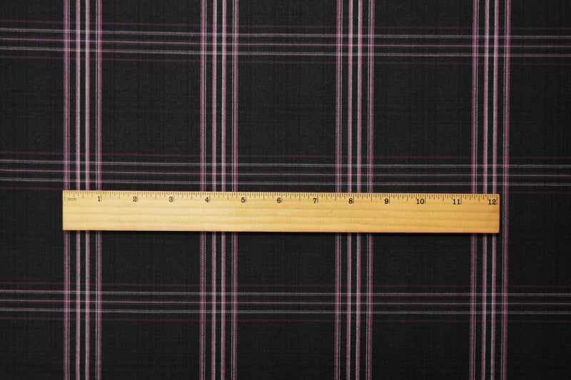 Black-Purple-Multi Wool Poly Plaid Japanese Woven Suiting Fabric