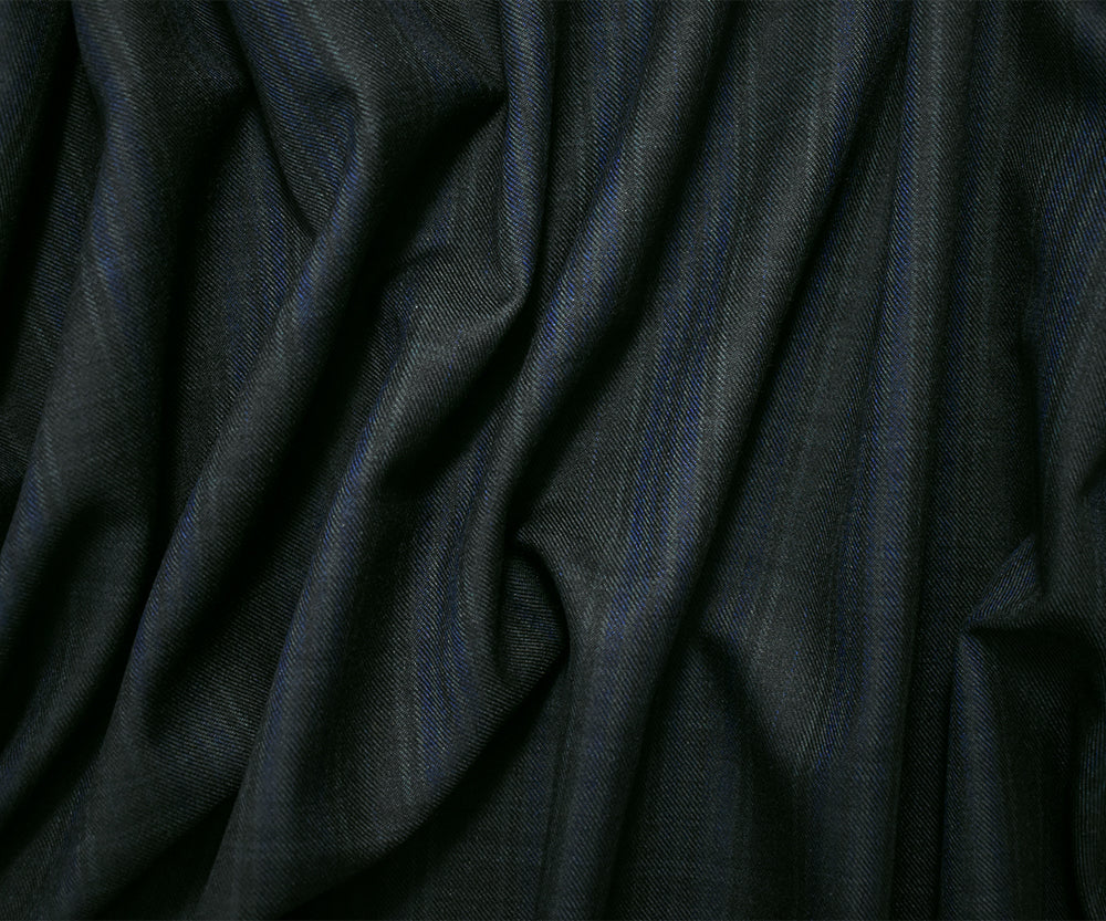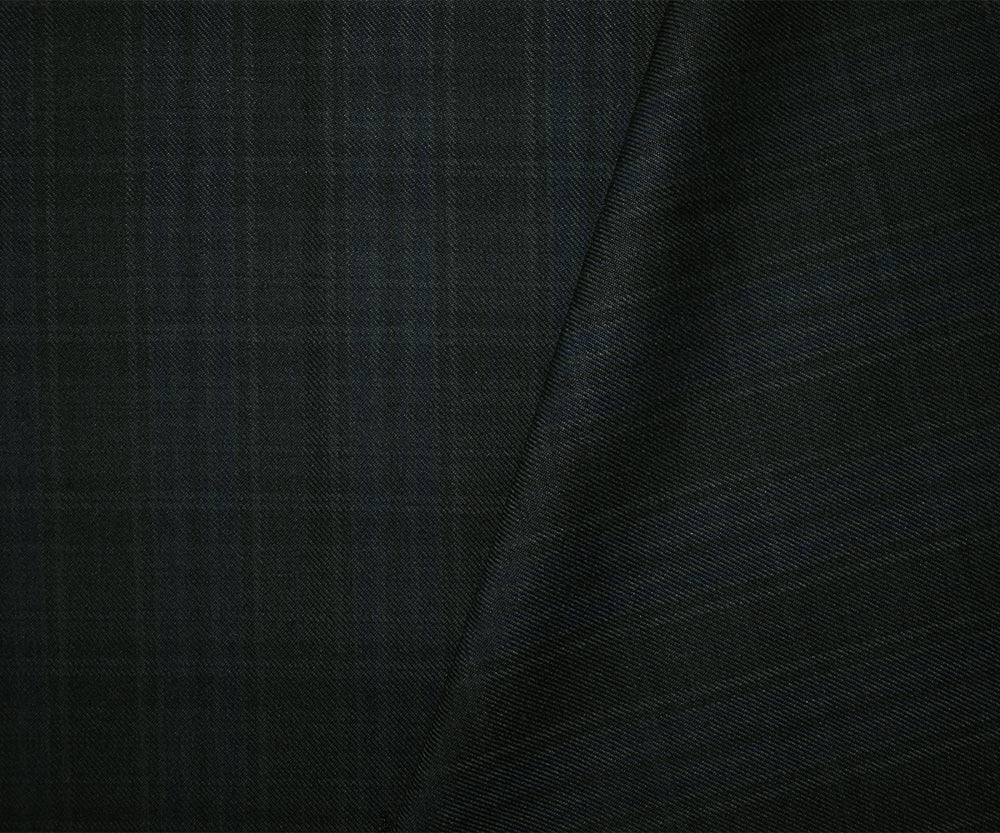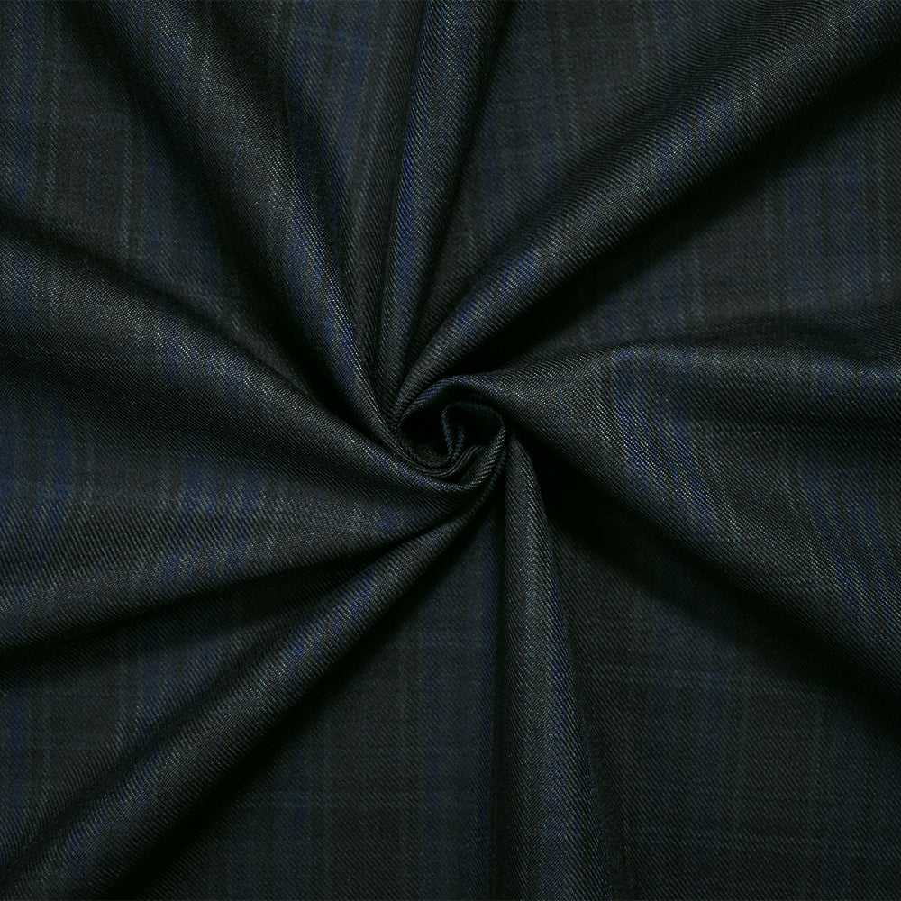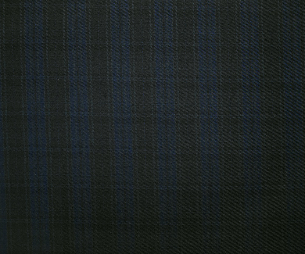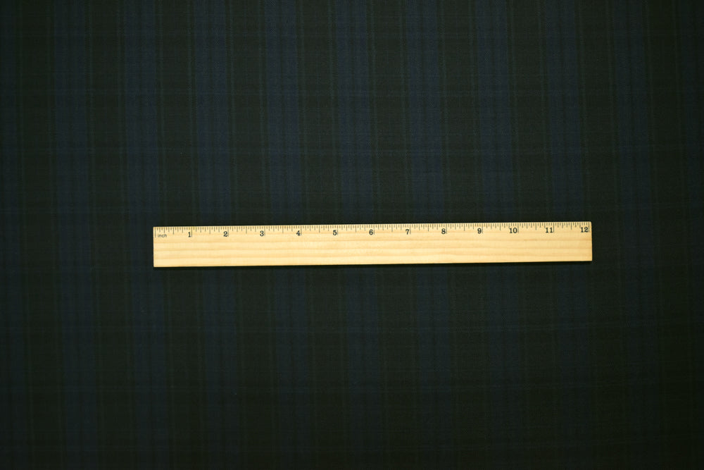 Deep Black-Blue-Multi Japanese Wool-Poly Plaid Twill Woven Suiting Fabric