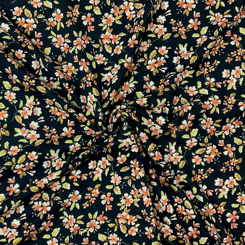 Black-Multi Poly Spandex Stretch Floral Print DB Jersey Knit Fabric