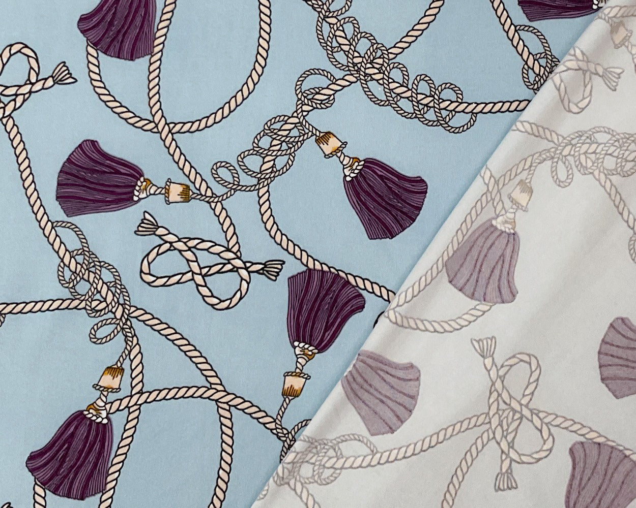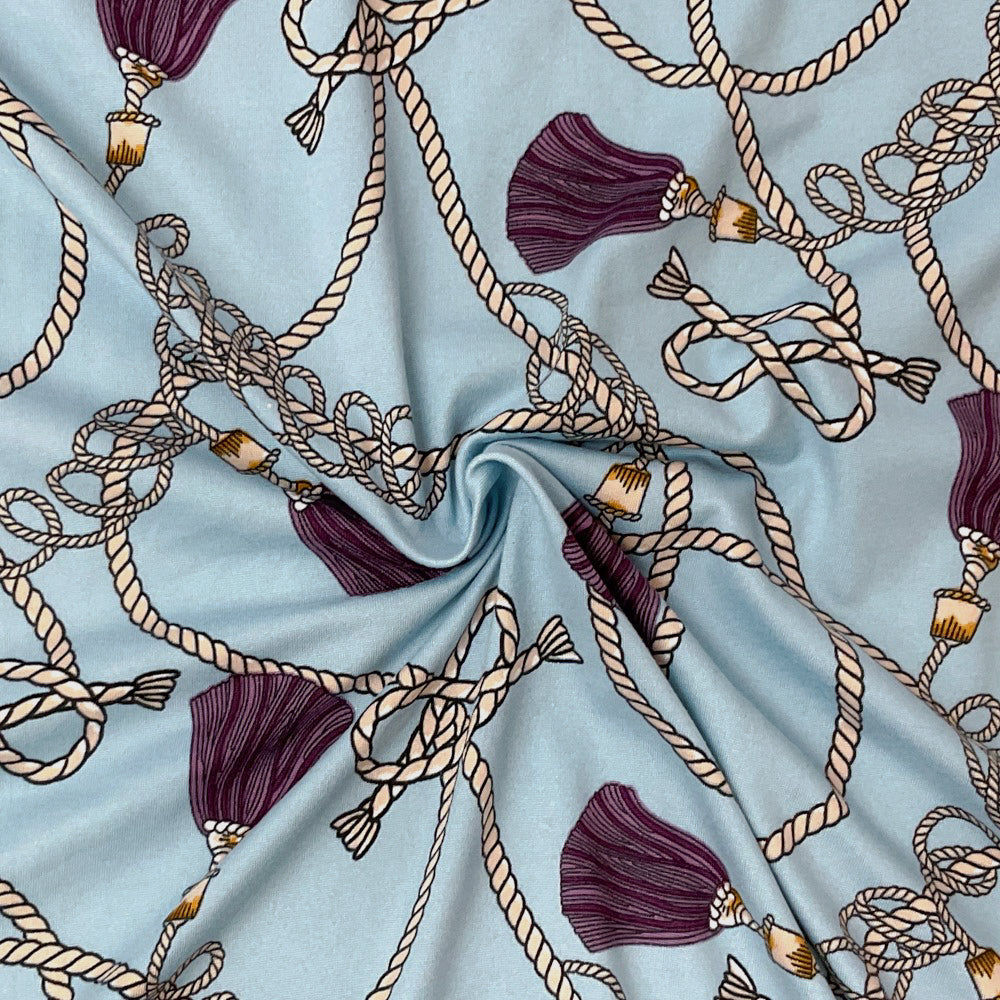 -Blue-Multi Poly Spandex Stretch Rope and Tassel Print Double Brush Jersey Knit Fabric