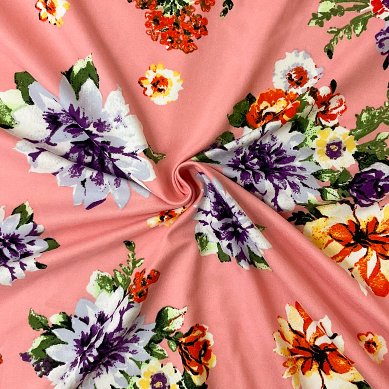 -Poly Spandex Stretch Floral Print Double Brush Jersey Knit Fabric