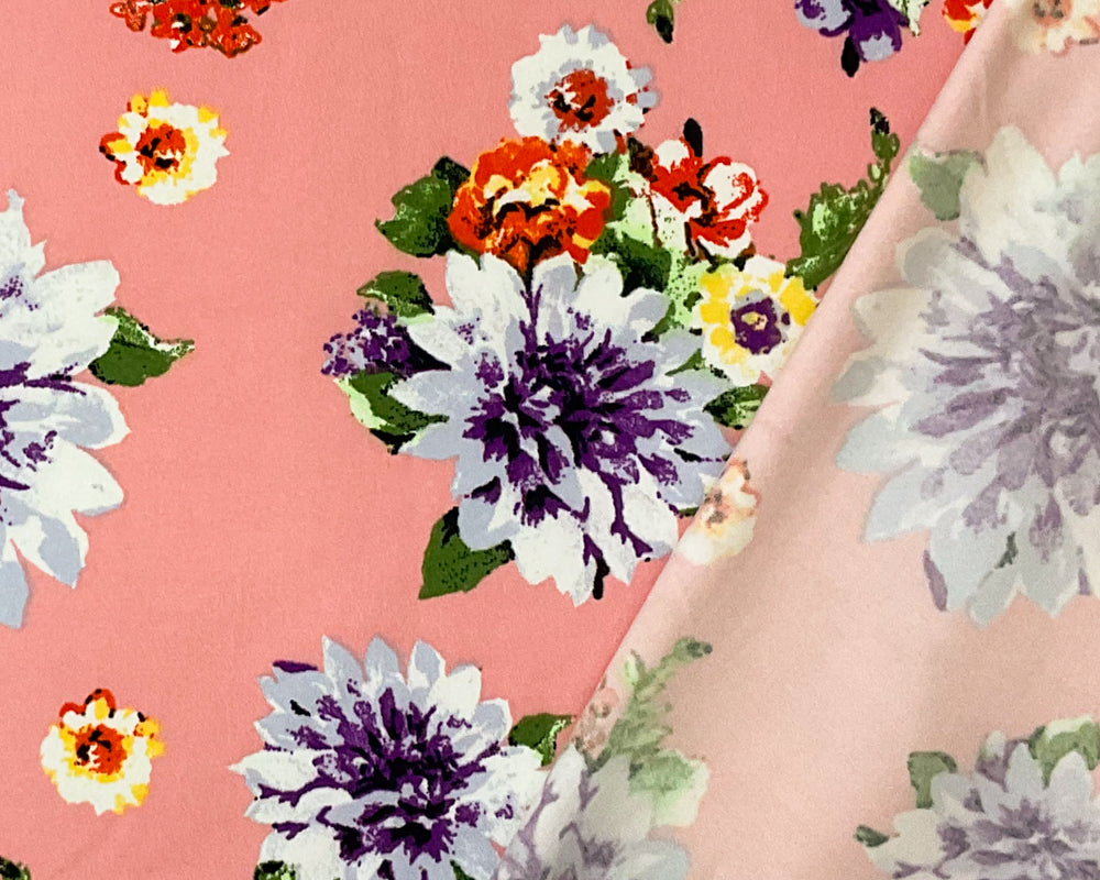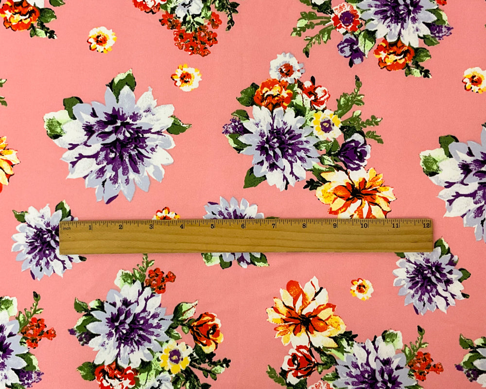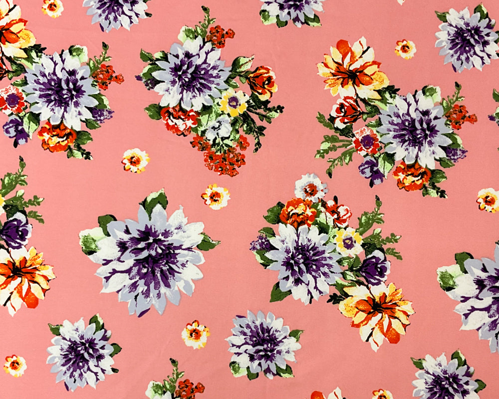 Pink-Purple-Multi Poly Stretch Floral Print DB Jersey Knit Fabric