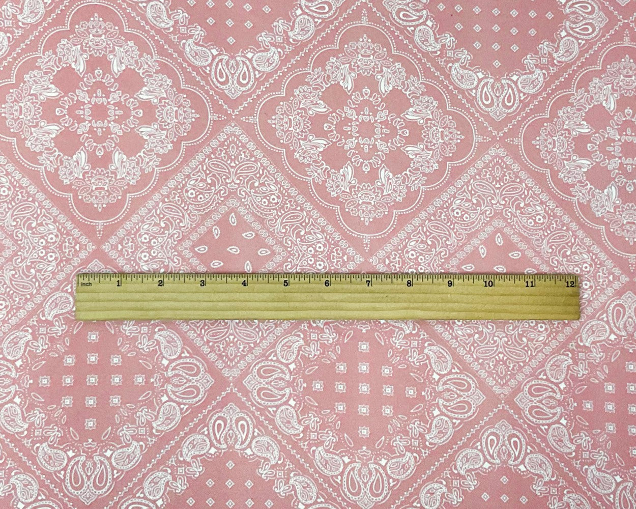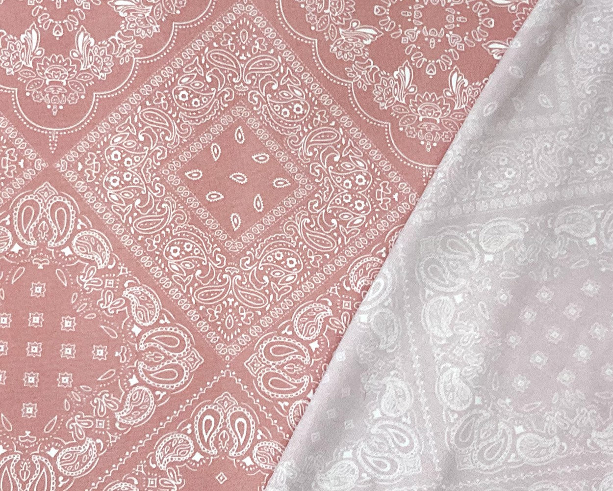 -Pink-White Poly Spandex Stretch Paisley Print Double Brush Jersey Knit Fabric