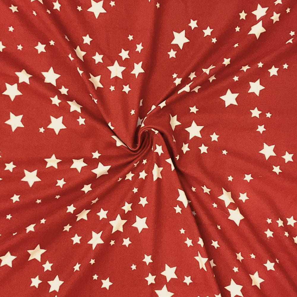 Red-White Poly Spandex Stretch Stars Print DB Jersey Knit Fabric