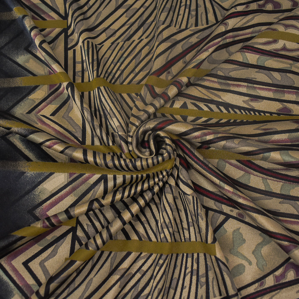 Taupe-Black-Multi Abstract Aztec Printed Stretch Silk Jersey Knit Fabric