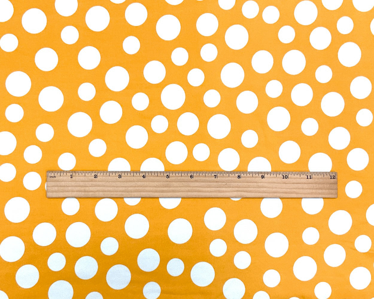 Yellow-White Poly Spandex Stretch Dot Print DB Jersey Knit Fabric