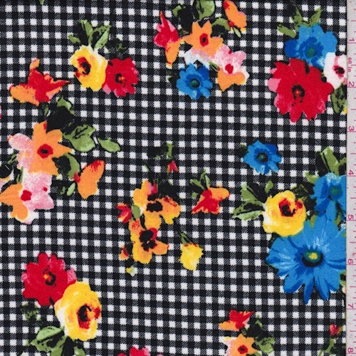 Black Multi Mini Check Floral Double Brushed Jersey Knit Fabric