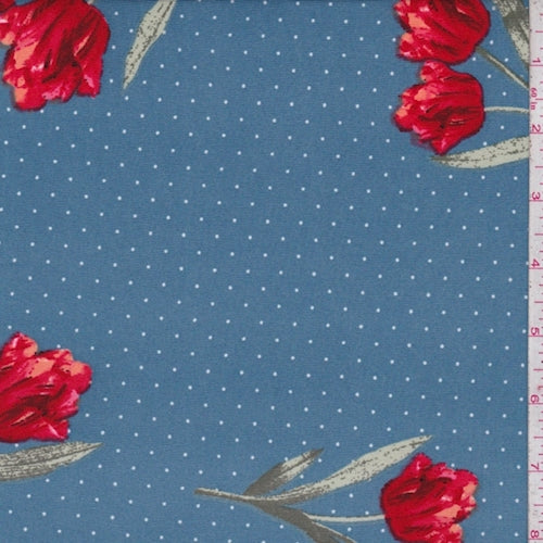 ITY Dusty Blue Pin Dot Floral Jersey Knit Fabric