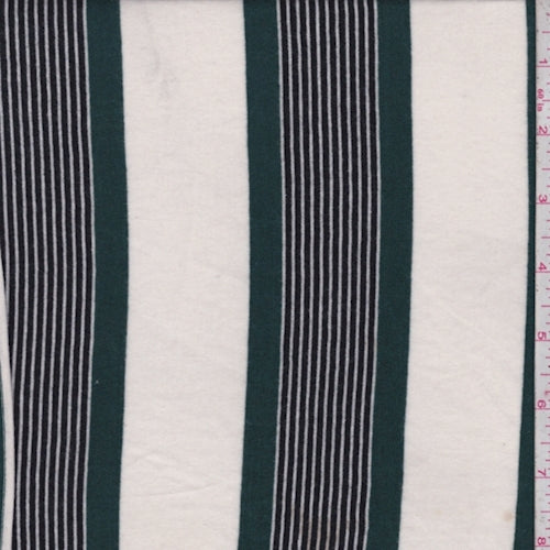 Ivory/Forest/Black Stripe Rayon Jersey Knit Fabric