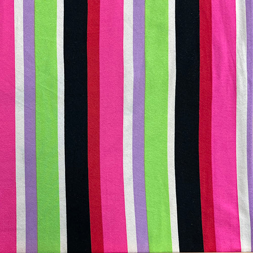 Neon Green Multi Print Stripe Double Brushed Knit Fabric