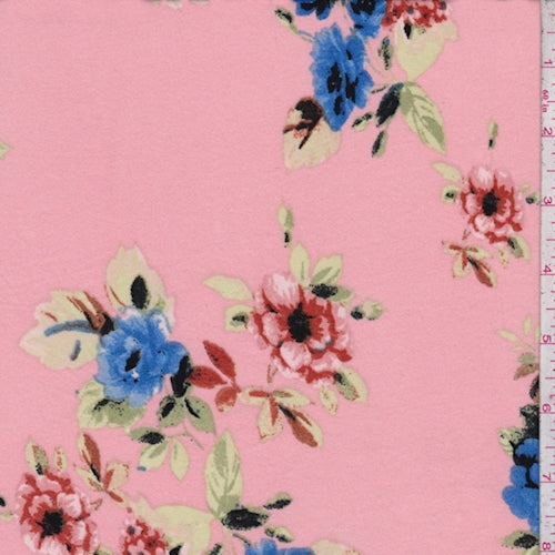 Peach Pink/Blue Multi Floral Brushed Jersey Knit Fabric