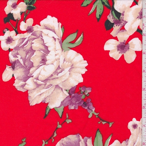 Red/Beige Dogwood Double Brushed Jersey Knit Fabric