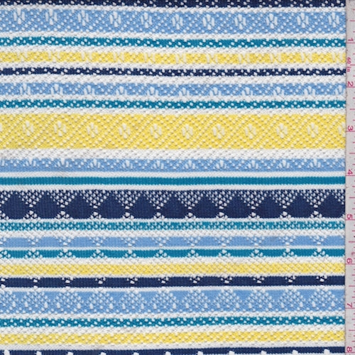 Sky/Navy/Yellow Stripe Pointelle Knit Fabric