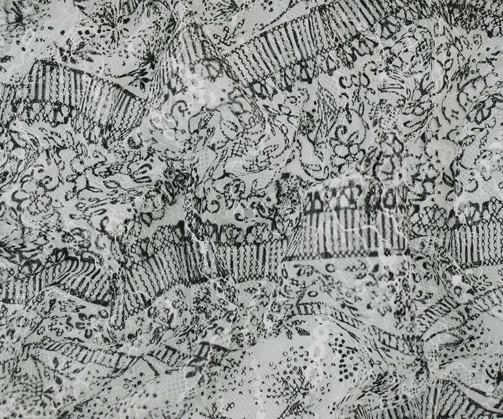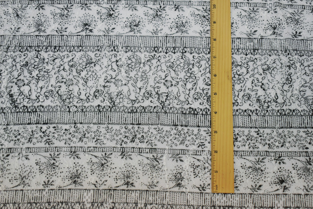 White-Black Nylon RAYON Floral Stripe Printed Lace Mesh Knit Fabric