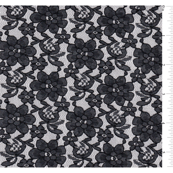 Solid Black Allover Lace Fabric Suitable for Apparel, Home Decor, and Special Occasions 100% Polyester 60" Wide