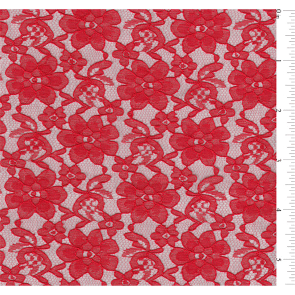 Solid Red Allover Lace Fabric Suitable for Apparel, Home Decor, and Special Occasions 100% Polyester 60" Wide