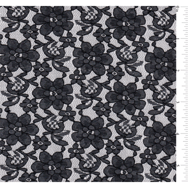 Solid Black Allover Lace Fabric Suitable for Apparel, Home Decor, and Special Occasions 100% Polyester 60" Wide Machine Washable